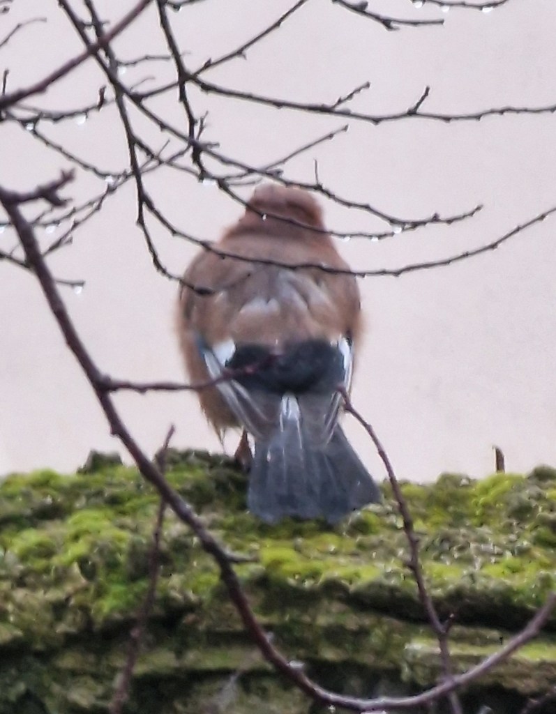 Sur le site de construction de 28 logements avec Immobilière 3F, le 2 janvier, un Geai des chênes a été aperçu sur un des vieux murs a pêche du site que nous allons restaurer.