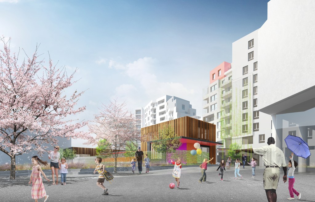 Construction neuve de 3 batiments – dont 2 batiments de logements (47+48) et une école maternelle de 9 classes + centre de loisirs (VEFA) au sein d’un projet urbain orchestré par A/ECDP – Agences Elizabeth et Christian de Portzamparc (100 000 m2 surface total quartier)