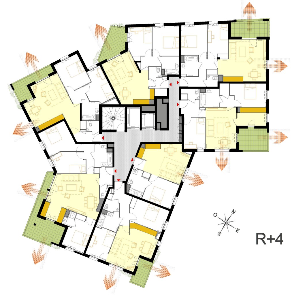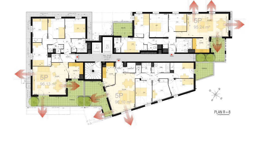 En écho de cette intense urbanité, les volumes se découpent selon des orientations et des vues finement calculées. Toutes les constructions dessinent ainsi un épannelage varié faisant de l’architecture une politesse à l’égard de la ville.