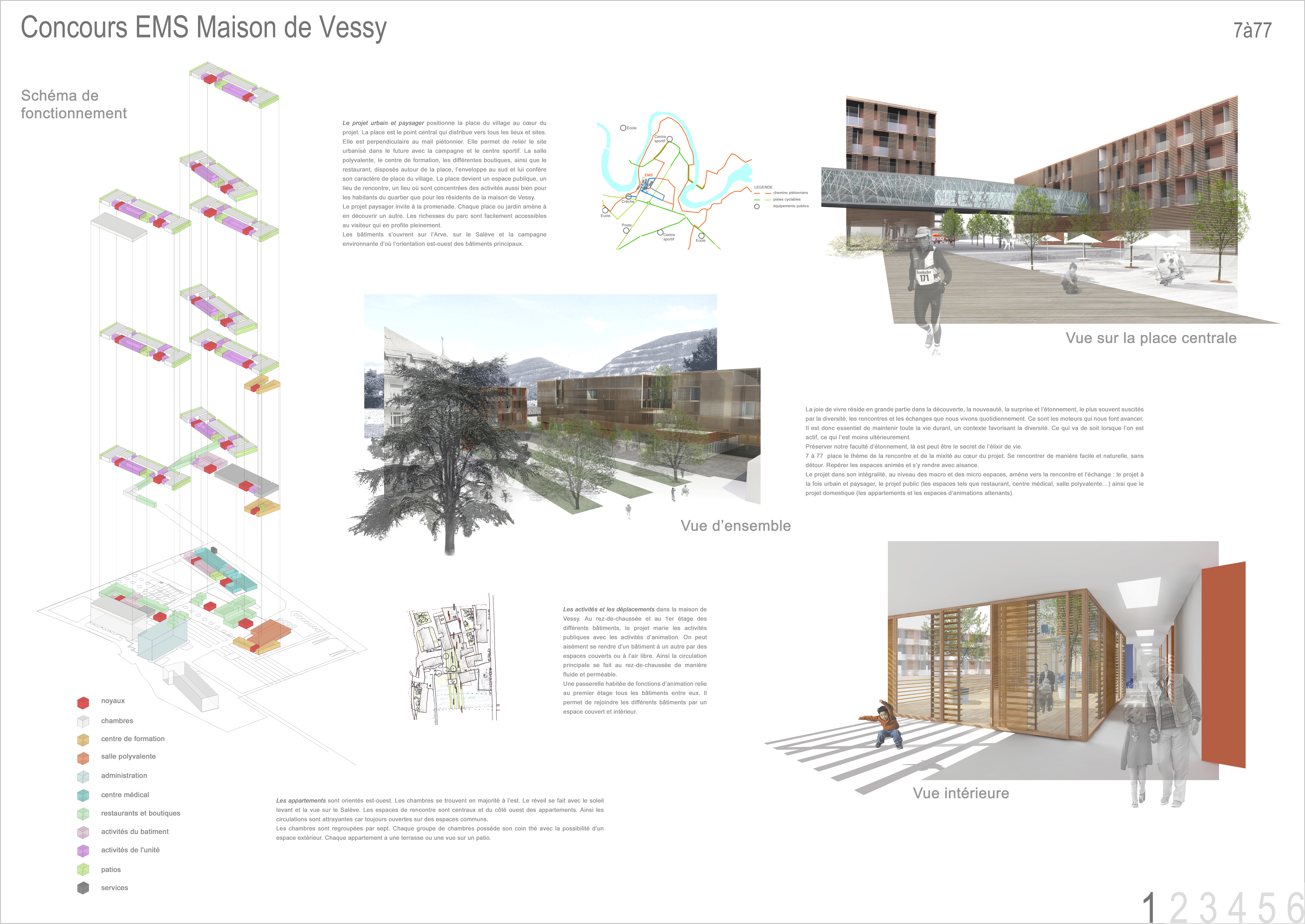 Situé à proximité de Genève, près de l’Arve, la maison de Vessy est un centre médicaux social qui a vu sa clientèle croître ces dernières années. Etablit depuis 1921, un projet d’agrandissement et de réhabilitation a été lancé, celui-ci vient s’intégrer dans une opération urbaine à plus grande échelle. Au cœur de ce futur quartier résidentiel, le projet se veut fédérateur pour le développement des projets à venir. Aujourd’hui il est isolé au milieu d’un plateau.